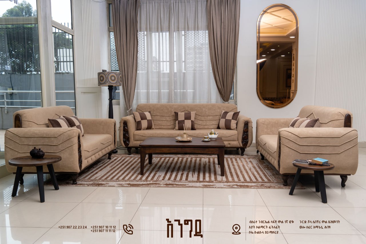 The Engida Sofa by Andegna Furniture is where quiet luxury meets everyday comfort. Crafted with a strong wooden structure and refined upholstery, it brings a calm, confident presence into any living space. Its balanced proportions and clean lines create a timeless look that feels both modern and deeply rooted in quality craftsmanship. Designed to be beautiful, durable, and effortlessly welcoming.